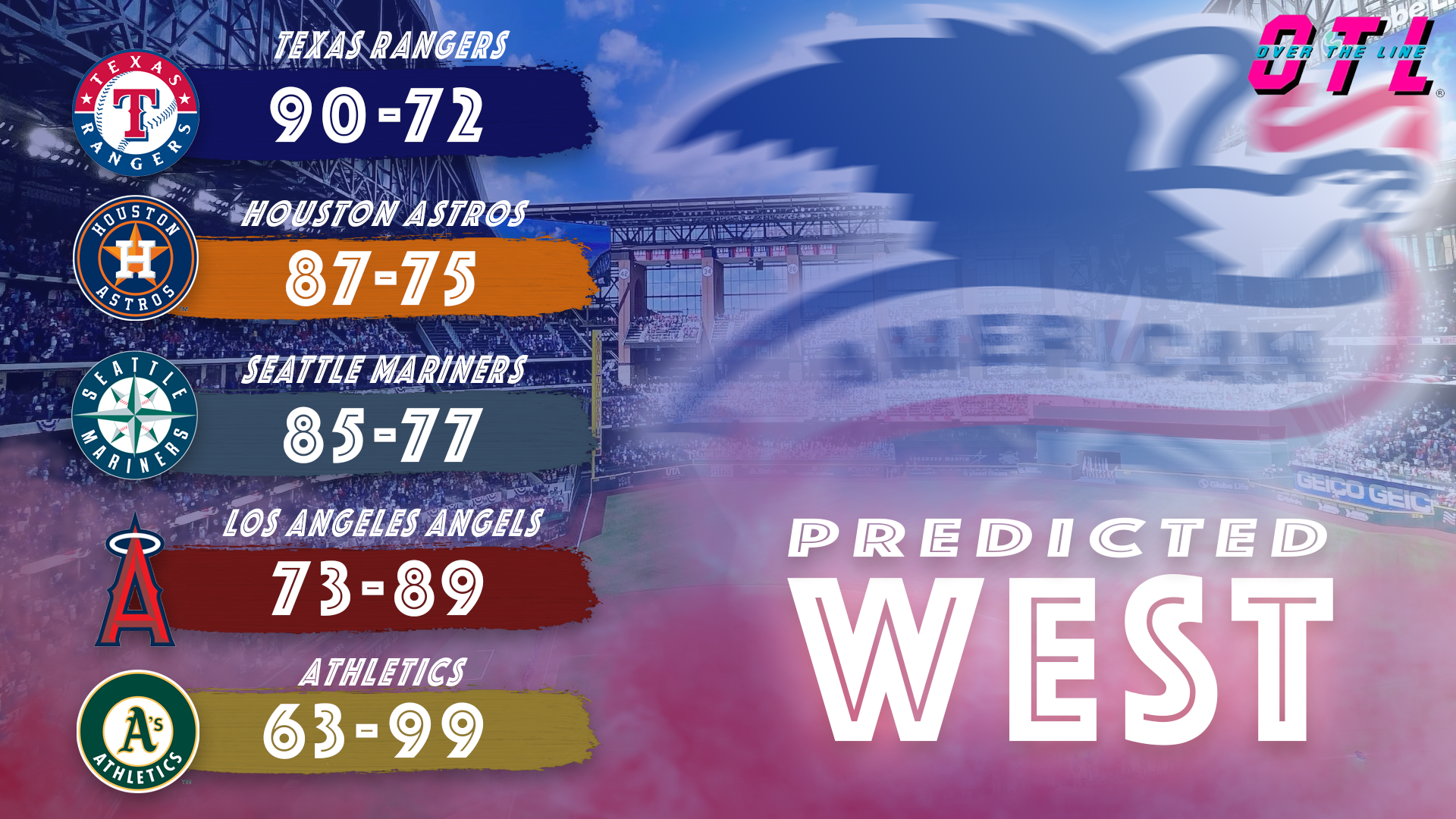 This offseason, the Rangers retained Nathan Eovaldi on a three-year deal and bolstered their offence with lefty slugger Joc Pederson and corner infielder Jake Burger, adding power to an already potentially potent lineup. Relievers Chris Martin and Jacob Webb addressed the need for bullpen depth. With their core very much intact, and the possibility of a fully healthy Jacob deGrom at the helm of the rotation, I predict perhaps the biggest improvement in this article. I believe the Rangers to go 90-72, a 12-win improvement, and win the AL West, bouncing back in a major way.