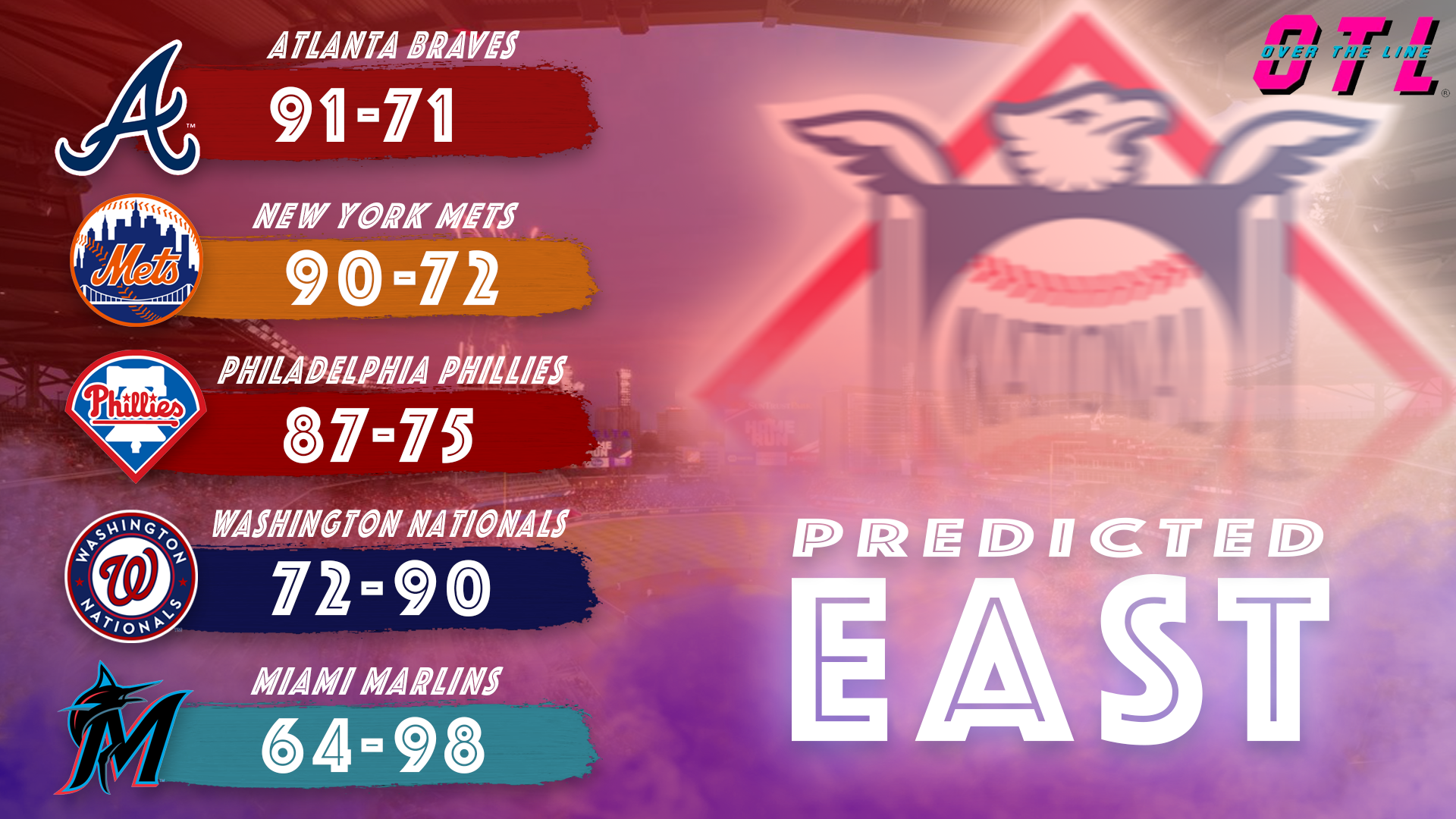 The Mets made a statement this offseason by signing Juan Soto to a record-breaking 15-year deal worth over $800 million. Owner Steve Cohen is willing to spend and wants to win immediately. However, the Mets lost Luis Severino to the Athletics, and the risk of losing several key free agents, including Pete Alonso, looms. With Soto joining an already strong team, the Mets are primed to contend for the division title. However, they will need a better bullpen performance, similar to the one they had in 2024, to unseat the Braves. I have them finishing with a 90-72 record.