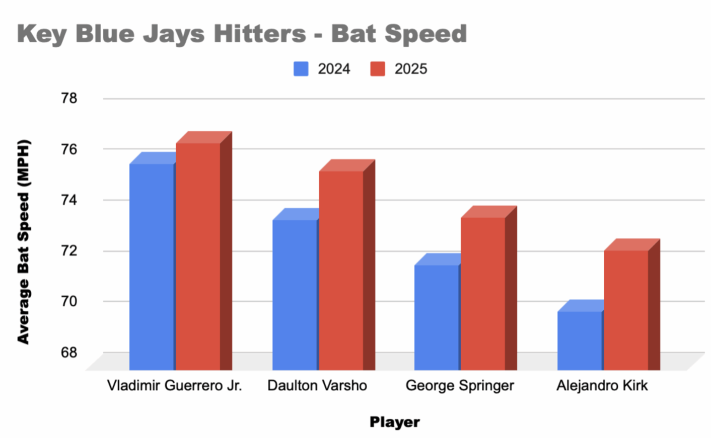 Meanwhile, the top of the order, featuring Vladimir Guerrero Jr., Daulton Varsho, Alejandro Kirk, and a resurgent George Springer, made new strides under Popkins’ guidance. They began swinging with greater intent, attacking pitches with more force and trusting the instincts that brought them to the big leagues. That renewed conviction created a ripple effect, skyrocketing their average bat speed, and energizing the entire lineup, stabilizing an offence that had been adrift.